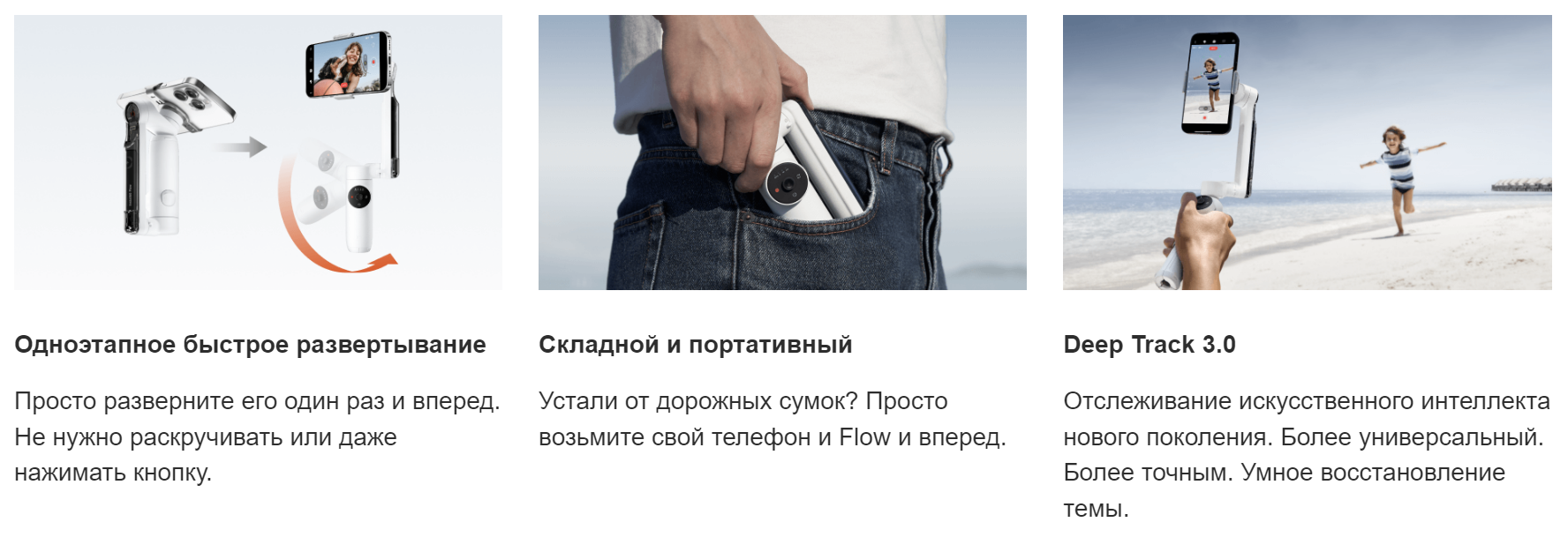 Insta360 Flow Creator Kit White – 3-х осевой стабилизатор для смартфонов с функциями искусственного интеллекта со встроенной селфи-палкой и триподом. Отслеживание объектов в реальном времени, автоматический монтаж, большой набор шаблонов для съемки с подробными инструкциями.